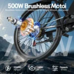 500W Motor & Long-Range Battery: The 700W PEAK brushless motor and 36V 10AH removable battery deliver a top speed of 25MPH and a range of up to 35 miles.