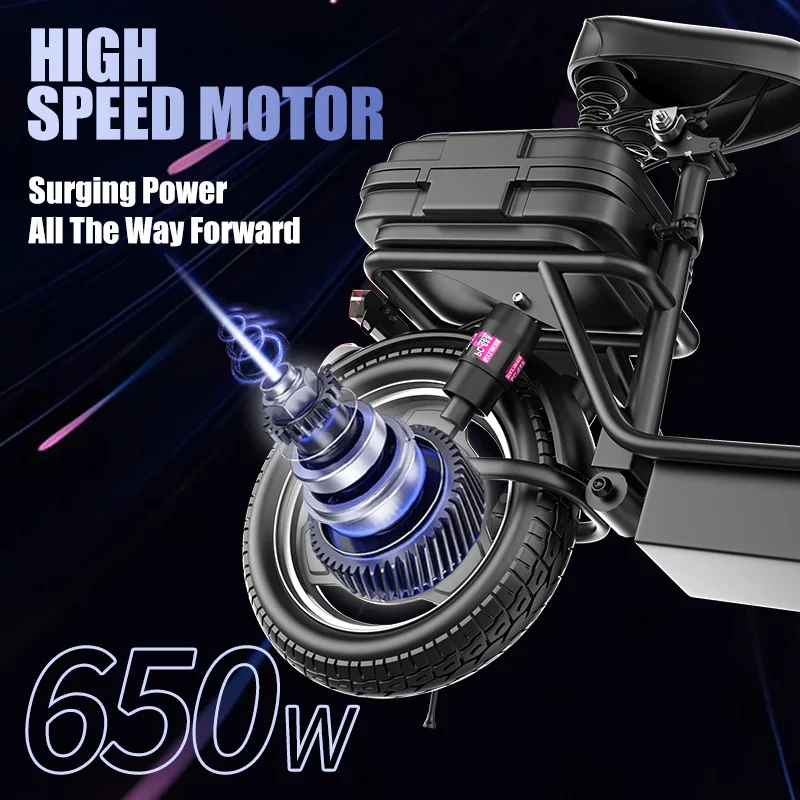 [Foldable and Durable Design] The electric bike has foldable handlebar makes it easy to store and carry, perfect for transporting in your car trunk or on public transport. Its sturdy metal construction supports a maximum weight of 265 pounds, guaranteeing long-term durability and reliability